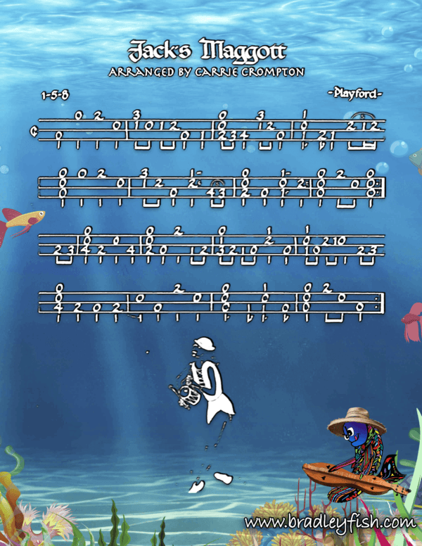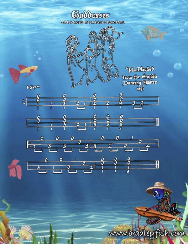 Carrie Crompton, the arranger, was so kind as to let me share the Tablature for these pieces. I just added the sheet music, so you can scroll down for them and download them